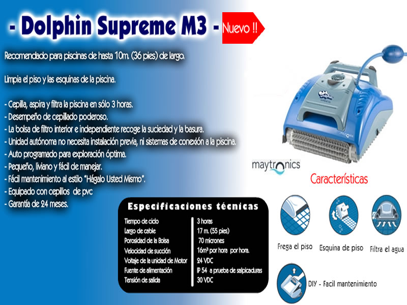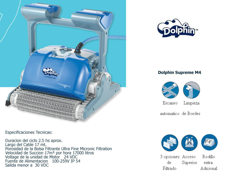 El modelo Dolphin Supreme M4 Pro representa una mejora respecto al modelo Supreme M4. En este caso, incluye mejoras como la doble motorización (dos motores) así como un nuevo giroscopio, lo que ayuda enormemente al limpiafondos a la hora de optimizar el tiempo y la superficie de limpieza.