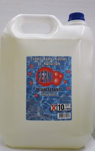 Cloro líquido en presentaciones de 5 lts. y 10 ltos. y a granel desde un litro en adelante.