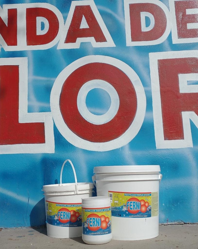 Cloro disolución lenta al 90 % para piscina con venecitas en presentación de 1 kg x 5 kgs. x 10 kgs. x 20 kgs. y 50 kgs.